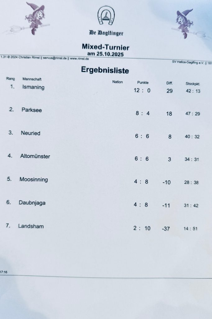 06.05.2025 Trainingsturnierserie 2025Gabi, Toni, Hermann und CookiePlatz 2 – 08:06anscheinend reichts nochfür die ein oder andere Maßsteht der Maibaum schief oder Julia?der Baum steht1. Mai 2025könnt´knapp werden mit dem TRINKgeld25.04.25 GilchingErgebnis: Platz 9Cookie, Max, Michi, Micha. Coach: Karl3. PlatzMicha, Michi, Cookie und Karl08.02.2025 Hirschgartenmit dem KulturvereinNeujahrsschiessen 2025Weihnachtsfeier 2024-2Weihnachtsfeier 2024-3Weihnachtsfeier 2024-1Nikolausturnier 2024-3Nikolausturnier 2024-2Nikolausturnier 2024-1Herbstturnier `24 – Neuried: Platz 2Herbstturnier `24 – Wörthsee: DIE SIEGER !Herbstturnier `24 – Inselmühle: Platz 3Herbstturnier `24 – Daubnjaga I: Platz 4Ergebnis Herbstturnier `24 – Daubnjaga II Platz 5Mannschaften Herbsturnier 12.10.2024Max`s geniale GulaschtaschenWarten auf den TurnierstartESV Turnier 21.09.2024 Daubnjaga und BuchloeFrontenhausen 28.09.2024: die MannschaftenZeitungsartikel: Turnier 28.09.2024 in FrontenhausenKampf der GigantenSieger: Cookie24.08.2024EC Inselmühle 13.07.24 – die Mannschaftdas Ergebnis…und jetzt die Profis am Werk…das schaut jetzt schon recht gut ausToni bewacht sein Ferkelalles wartet – Hunger !das lange Grillen beginnt – bei der Hitze!super Beifahrer bei Toni im Cabrio04.05.24: Versuch von Matze04.05.24: die Mannschaft – Micha, Smartie, Matze, Patrick, Kalle04.05.24: Smartie beim Schuss, der uns die Kehre bringt…04.05.24 – Zuschauer04.05.24 – Patrick in Hochform04.05.24 beim ESV München: der coolste Zuschauer…erhält der Daubnjaga Nachwuchs…den Bierpreis für’s Feiern !das Team: Toni, Micha, Mimi und Cookieleider Letzter, trotz solch genialer Maß…Saisonvorbereitung 2024: neue Markisestark besetztes Turnier mit 13 MannschaftenPlatz 9 – sehr gut! Gabi, Toni, Fotti, Ralf und MichaFreisitzbeleuchtung undaufgeräumtes Lager … !auf dem Puchheimer Volksfest…